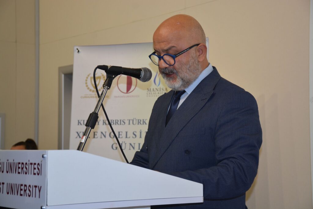 Konuşmasına Yakın Doğu Üniversitesi’ne teşekkür ederek başlayan Cumhurbaşkanlığı Engelliler Komite Başkanı Ahmet Akdeniz, “Yakın Doğu Üniversitesi ev sahipliğinde çok önemli ve değerli çalışmalar gerçekleştirdik. Bugün geldiğimiz noktada, Cumhurbaşkanlığı bünyesinde böyle bir komitenin kurulmasının temelinde bu çalışmalarda elde edilen birikim ve çabalar yatmaktadır. Katıldığımız kongreler ve paneller ile üniversitede yürüttüğümüz bilimsel çalışmalar çok önemli çünkü tüm veriler artık teoriden uygulamaya dönüşüyor. Bu süreci odağına alarak engelli bireylerin topluma etkin katılımı için bilimsel katkılar sunan Yakın Doğu Üniversitesine bir kez daha teşekkür ediyorum” dedi.